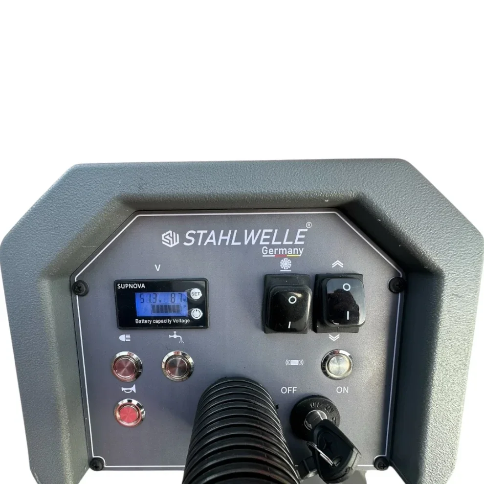 De Stahlwelle Germany E-800SW is een zeer moderne zitveegmachine, die perfect is ontworpen voor het efficiënte en grondige reinigen van grote oppervlakken. Met zijn indrukwekkende technische kenmerken en gebruiksvriendelijkheid zet hij nieuwe maatstaven in professionele reiniging. Hoofdkenmerken: - Maximale vuilopname: De hoofdborstel van deze veegmachine heeft een speciale V-vorm die maximale vuilopname garandeert. - Innovatief stoffilter: Het speciale stoffilter maakt filtratie tot 3 micron mogelijk en zorgt voor een schone omgeving. - Groot vuilreservoir: Het apparaat is uitgerust met een gemakkelijk te legen groot vuilreservoir, dat wordt ondersteund door rotatietechnologie. - Intuïtieve bediening: De veegmachine beschikt over een intuïtief bedieningspaneel en een beschermd, waterdicht paneel met een groot meertalig display, inclusief een urenteller.