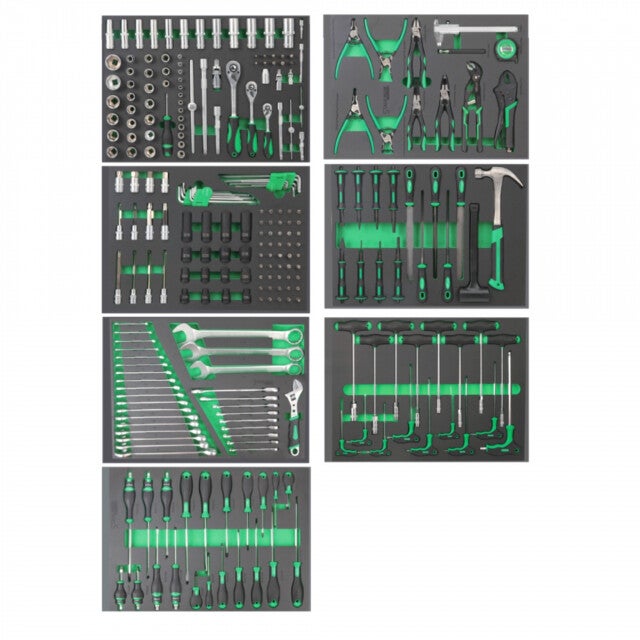 Het gereedschap zit opgeborgen in stevige schuimrubberen modules waardoor deze optimaal beschermd zijn.