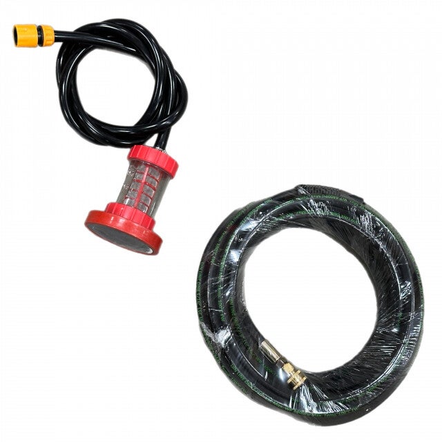 - Manometer, grofvuilfilter, aan/uit schakelaar en drukregelventiel voor het instellen van de werkdruk